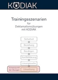 Die beschrieben Szenarien wurden sorgfältig geplant, entwickelt und erprobt. Dennoch stellen sie in der vorliegenden Version nur Vorschläge dar und können keinen Lernerfolg garantieren. Um die Szenarien qualitativ zu überprüfen, weiterzuentwickeln und zu erweitern, ist das Feedback durch Anwender erforderlich und auch dringend erwünscht. Bitte teilen Sie unter info@kodiak-revier.de mit, wie die Szenarien in Ihrem Training „funktionieren“, wo sie modifiziert werden sollten und welche weiteren Szenarien sich in Ihrem Training bewährt haben oder wünschenswert wären.